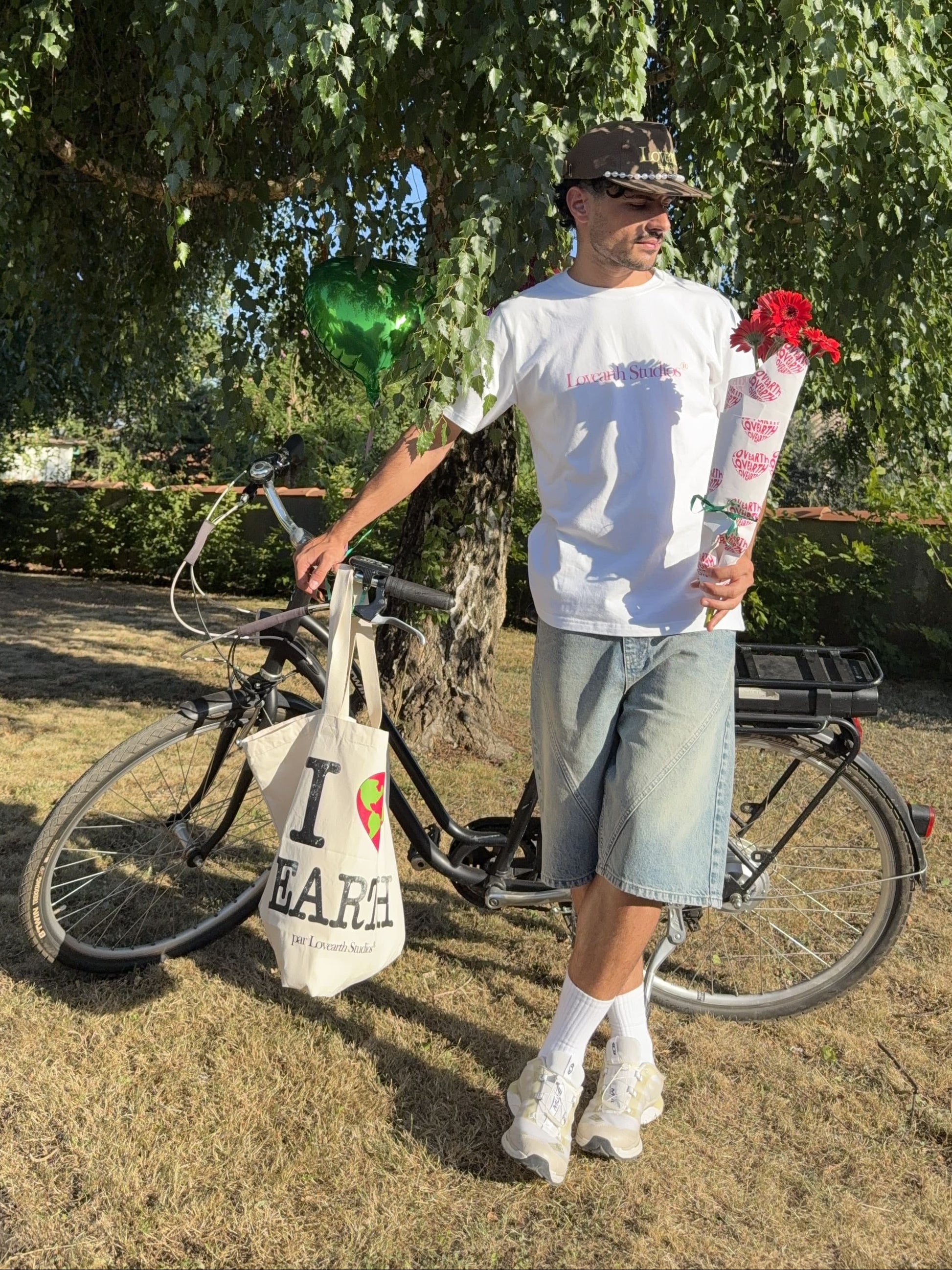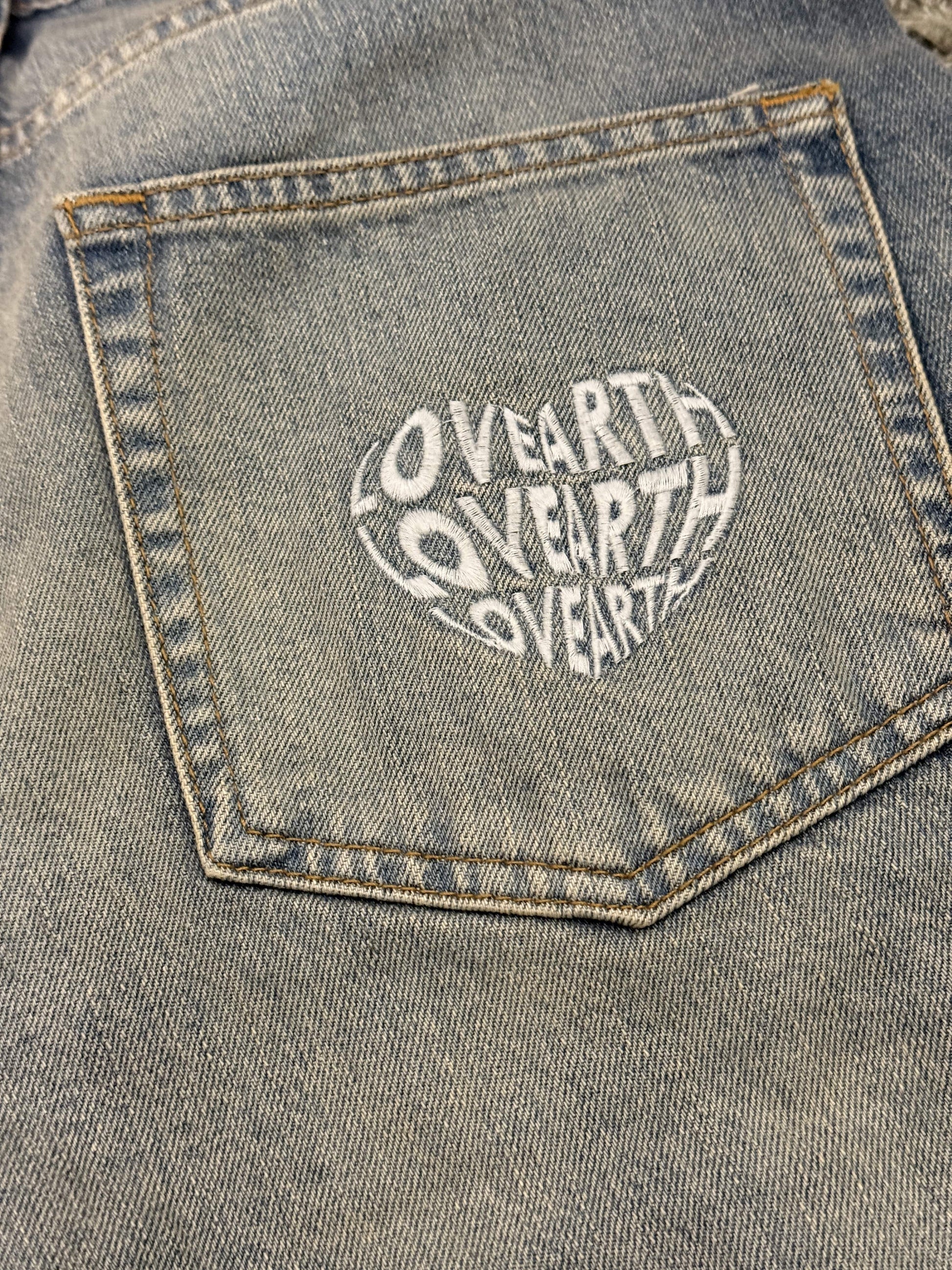 - Embroidery Lovearth monogram on the back-pocket
